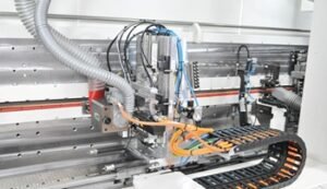 The adhesive is now partly applied to the edging material, and partly – in specific areas – applied directly to the workpiece.To achieve this, IMA Schelling combined different adhesive application systems and integrated them into the plant.