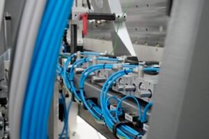 However, it was not just the adhesive application that presented challenges, the malleability had to be considered too, as IMA Schelling uses material thicknesses between 0.6 and 1.0 millimetres.The client required a solution that could apply material of this thickness at an angle of almost 90°.